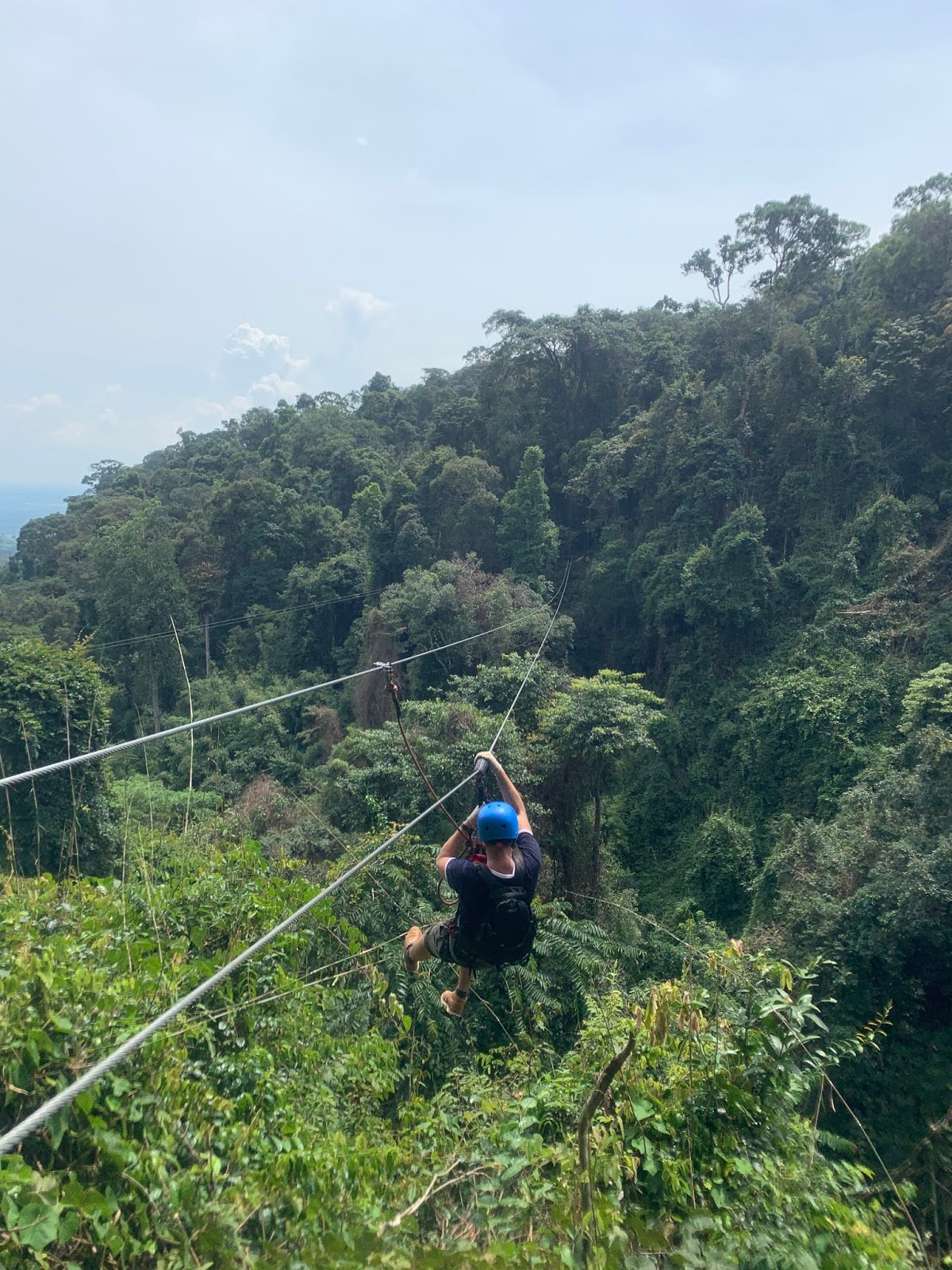 Następnie czekał nas canopy walk czyli widokowy spacer po czubkach drzew, wąskimi kładkami rozpostartymi nad lasem.