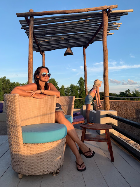 Północny kraniec Nam Ngum jest zupełnie inny niż południowy, jezioro wgryza się w ląd płytkimi "fiordami" i rozgałęzieniami pełnymi malutkich wysepek i zatoczek. Nad jedną z takich zatoczek ulokował się uroczy resort Sanctuary, który postanowiliśmy odwiedzić.